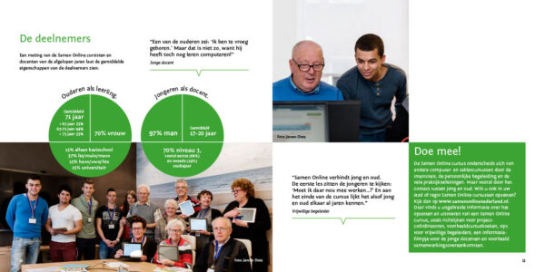 Ontwikkeling logo en huisstijl, beeldconcepten, website landelijk initiatief, intranet en forum voor vrijwilligers organisaties, individuele sites voor lokale Samen Online initiatieven en online cursusboek.