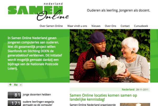 In Samen Online Nederland geven jongeren computerles aan ouderen. Met dit gezamenlijk project willen Skanfonds en Stichting DOEN de generatiekloof verkleinen.
